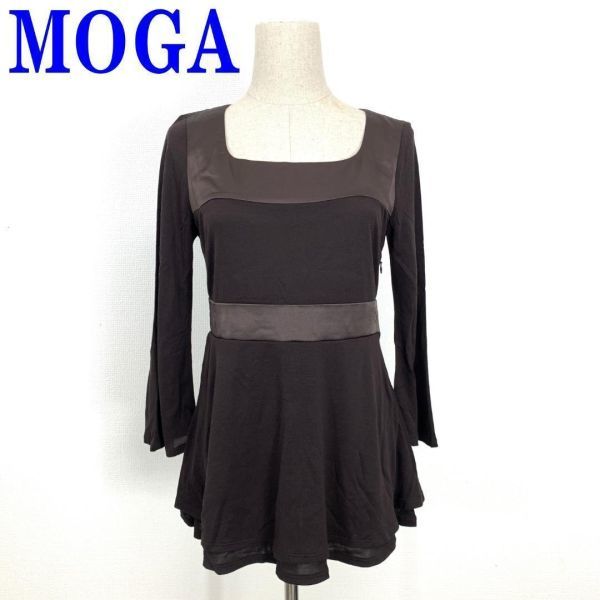 - モガ 長袖カットソー チュニック ストレッチ 茶色 MOGA ブラウン 2 C7025