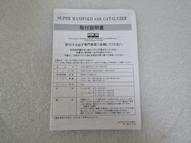 - ZN6 86 ZC6 BRZ HKS メタルキャタライザー 取付説明書