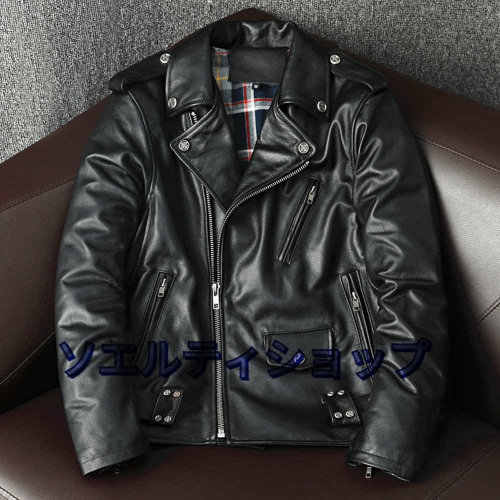 - 超人気★高品質 レザージャケット 本革 ライダースジャケット メンズファッション バイクジャケット カウハイド 牛革 革ジャン 韓流