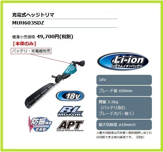 > マキタ 600mm 18V 充電式ヘッジトリマ MUH603SDZ (本体のみ)【バッテリ・充電器別売】 ■安心のマキタ純正/新品/未使用■