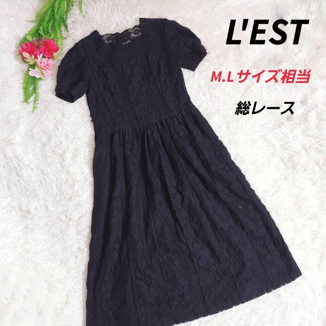- L'EST 総レース・ロング丈ワンピース・黒ブラック・フレア サイズ表記なし M.Lサイズ相当 67752