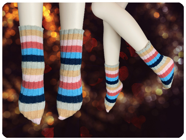 - ●リブ編み*カラフルクルーソックスC●1/4ドールサイズ(MDDやMSDなど)のドールソックス●