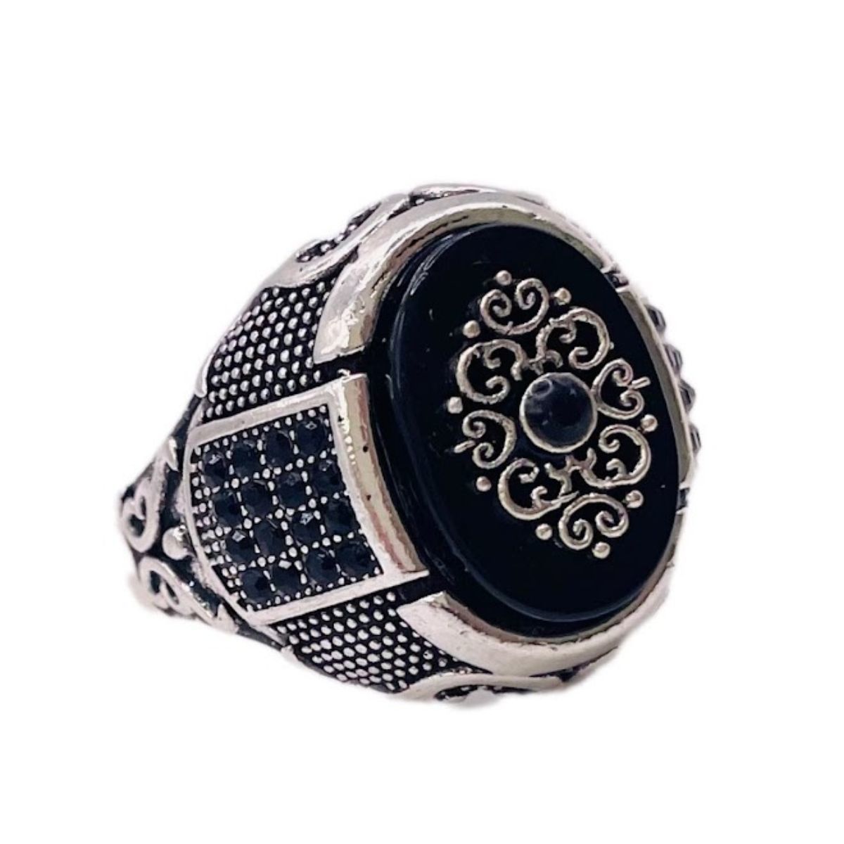 - 【16号】メンズ レトロ 指輪 リング 黒×シルバー ゴツい 太め アクセサリーヴィンテージ風