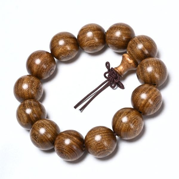 - [EasternStar] 金絲檀 ゴールデン サンダルウッド ブレスレット お守り 数珠 念珠 木珠 18mm 13玉
