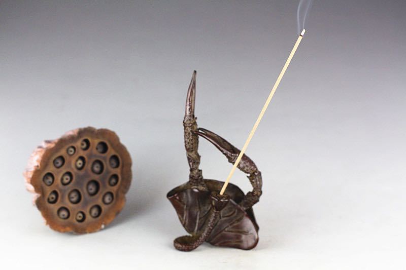 - 希少品 極美古銅香道具 煎茶道具 質感 細工実心実感 銅蓮葉かに置物 香器 焼香で心平和な毎日を 安心安寧 縁起物