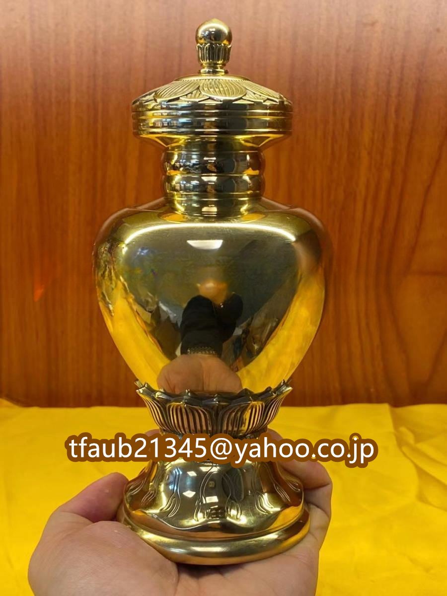 - 「密教法具 寺院仏具」極上品 宝珠型 土砂器 仏具 仏教美術 蓮華の彫り 真鍮製 磨き仕上げ 高さ18cm