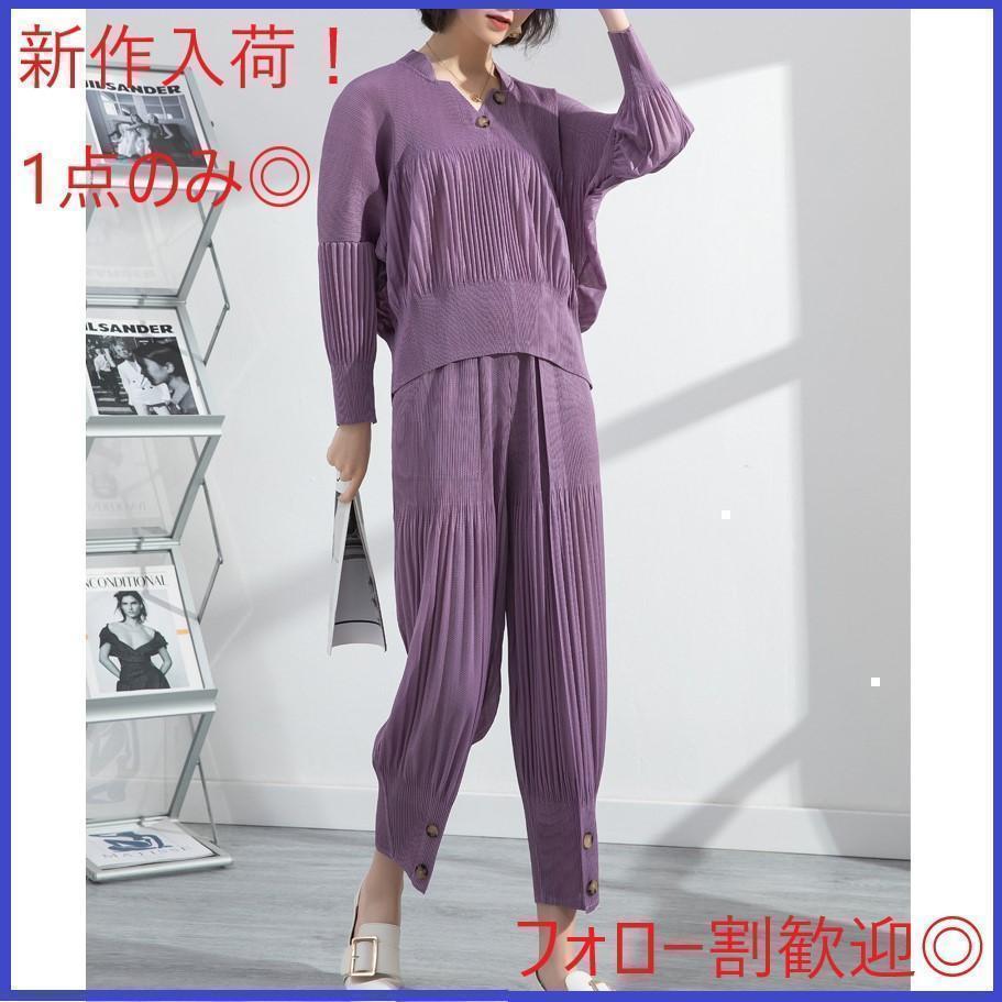 > 新作入荷!1点のみ【新品未使用】高級 上質 プリーツ セットアップ 上下 洗濯OK ブラウス トップス パンツ テーパード サルエル F