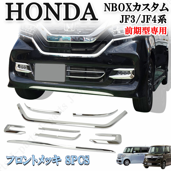 > ホンダ N-BOX カスタム JF3 JF4 NBOX フロントグリル フロントバンパーダクト 鏡面 メッキ ガーニッシュ 貼り付け ドレスアップ 8pcs
