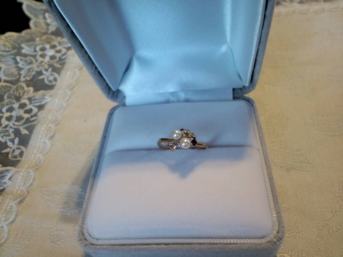 - 美品☆K10★天然パール&ルビー リング 9号 真珠 ルビー