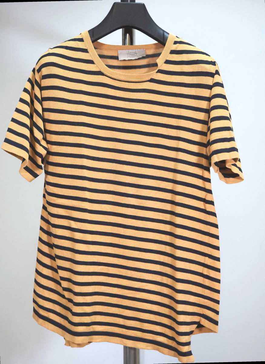 - 美品 MAISON FLANEUR メゾンフラネウール 半袖ボーダーニット46橙×黒 Italy製