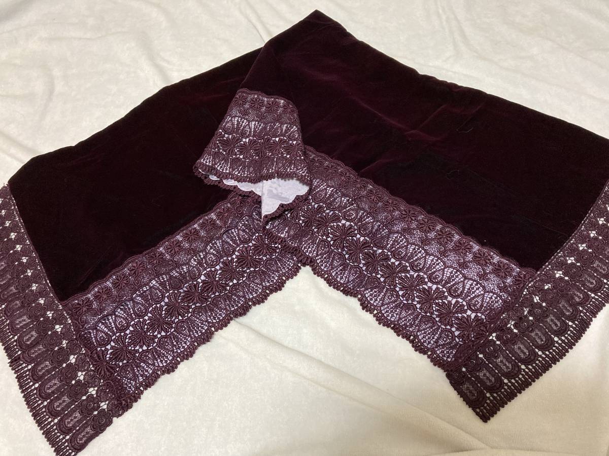 - シルク製ベルベット・レース使いショール(全体:約140×43cm) 未使用