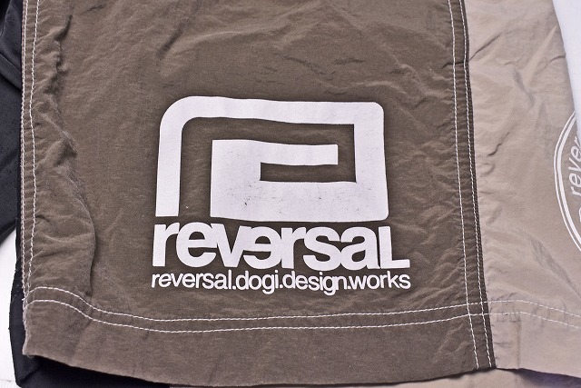 > reversal ★ リバーサル ★ 短パン ★ Mサイズ ★ ベージュ系 濃淡2色 ★ ポケット ★ マジックテープに傷み ★ 海パン ★ 街着 ★ 中古品