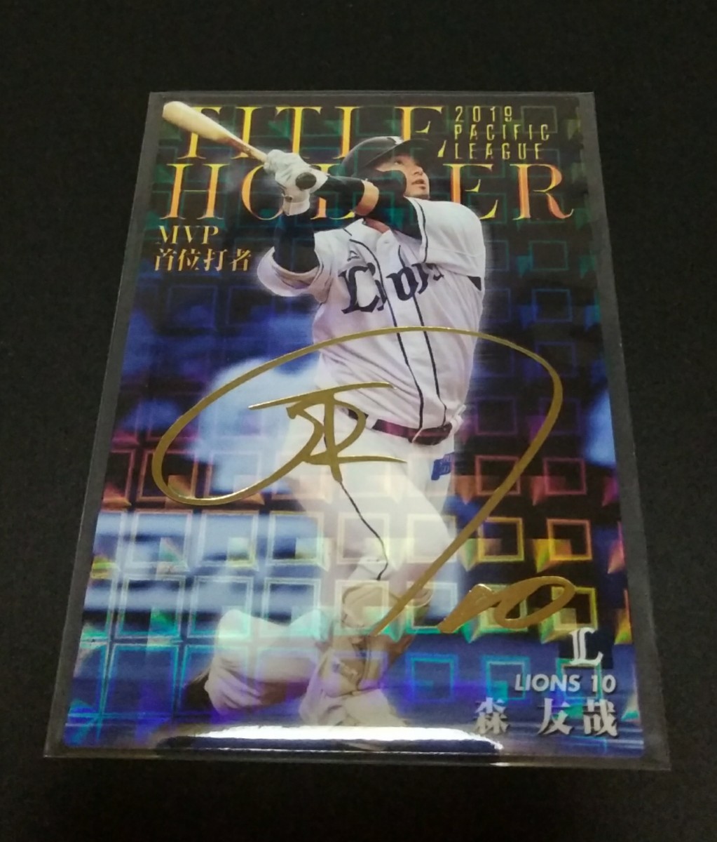 - 2020年カルビー 第1弾 森友哉(西武)金箔サイン入りタイトルホルダーカード。No,T-01。