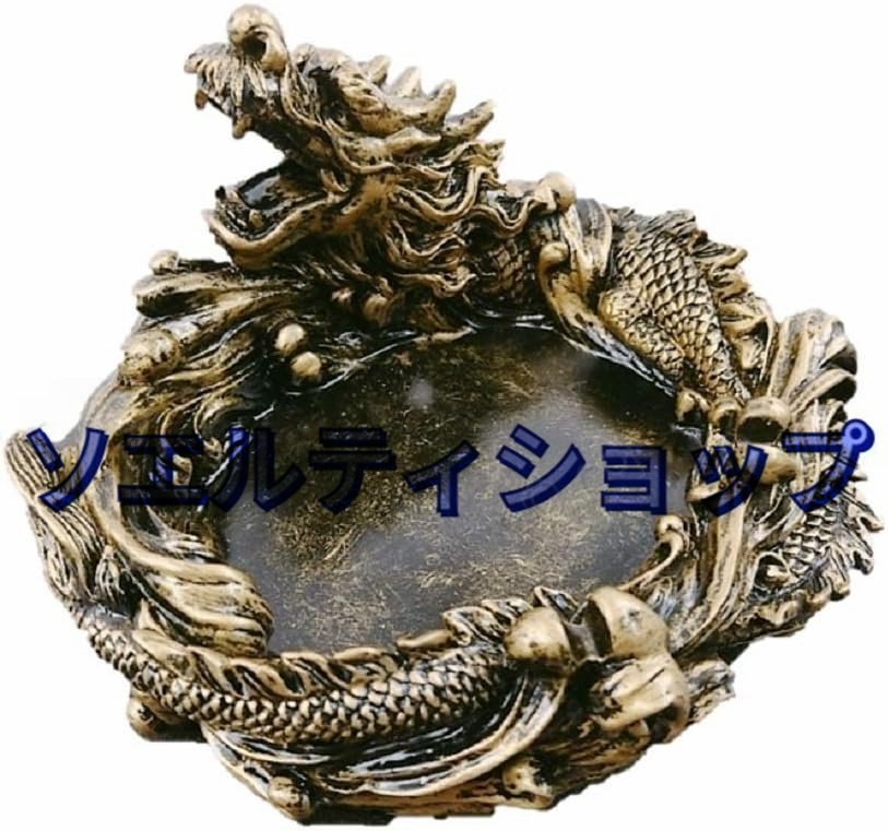 - 灰皿 ガラス 高級 ギフト ドラゴン 龍 アンティーク風 骨董風 インテリア 置物 オブジェ 喫煙具 とぐろを巻く 守護龍 風水 小物入れ