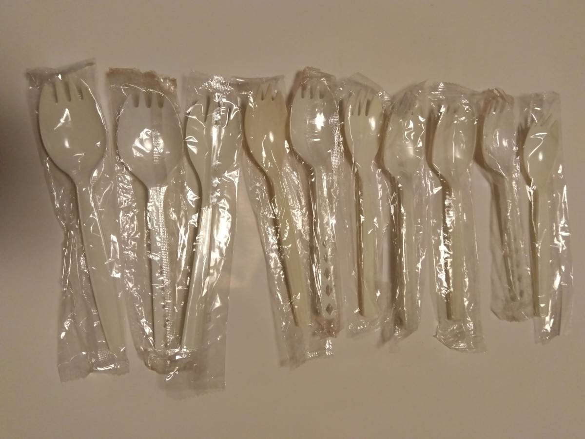 - 【新品未使用】プラスチック 先割れスプーン 160mm 20個