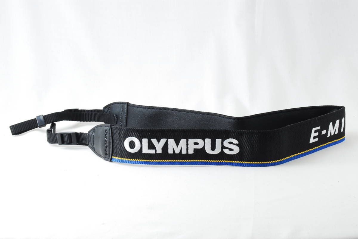 > ☆未使用☆OLYMPUS オリンパス E-M1MARK2 OM-D カメラ ストラップ 黒色(ブラック)×白色(ホワイト)×黄色×青色 刺繍文字 Camera Strap☆