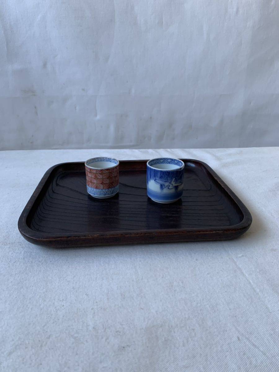 - 木目が綺麗な刳り貫き角盆 木製無垢材煎茶道具飾り盆花台春日盆茶盆天然木時代古玩古民具民藝古美術骨董古道具古物天然生活インテリア欅