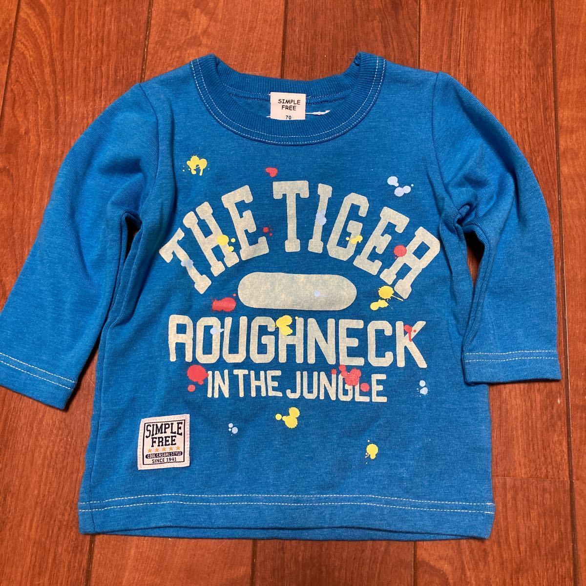 - カジュアル系・ストレッチ・長袖Tシャツ・ブルー・70②