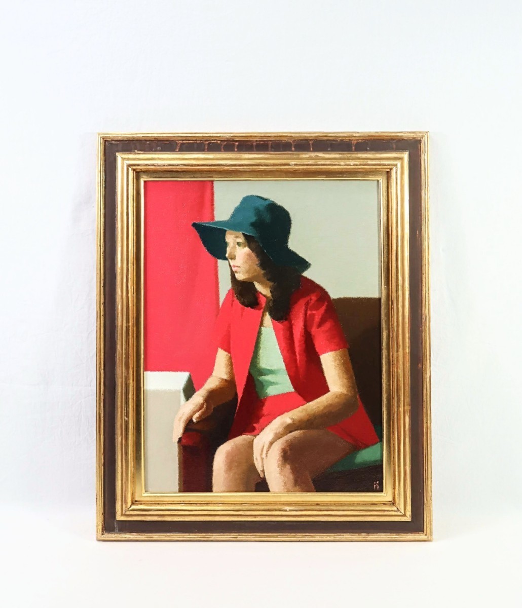 - 真作 中村清治 東美鑑定証書付き 1973年油彩「バラ色の服」画寸 P10 神奈川県出身 伊東廉に師事 構成、筆致、色彩美しく正統的な魅力 8008