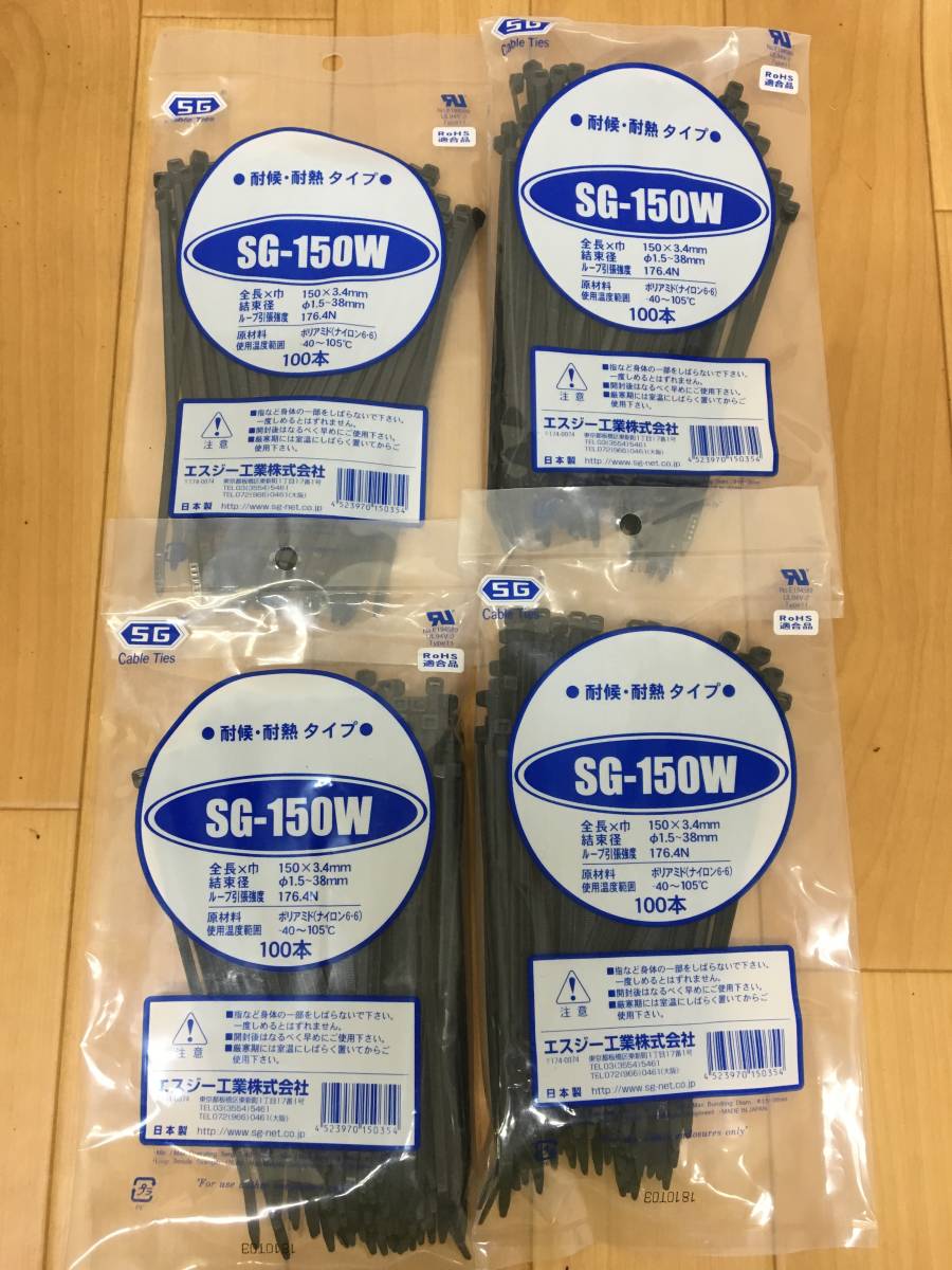 - SG / エスジー 結束バンド SG-150W 黒 150×3.4mm 400本(100本入×4袋) 耐候・耐熱タイプ