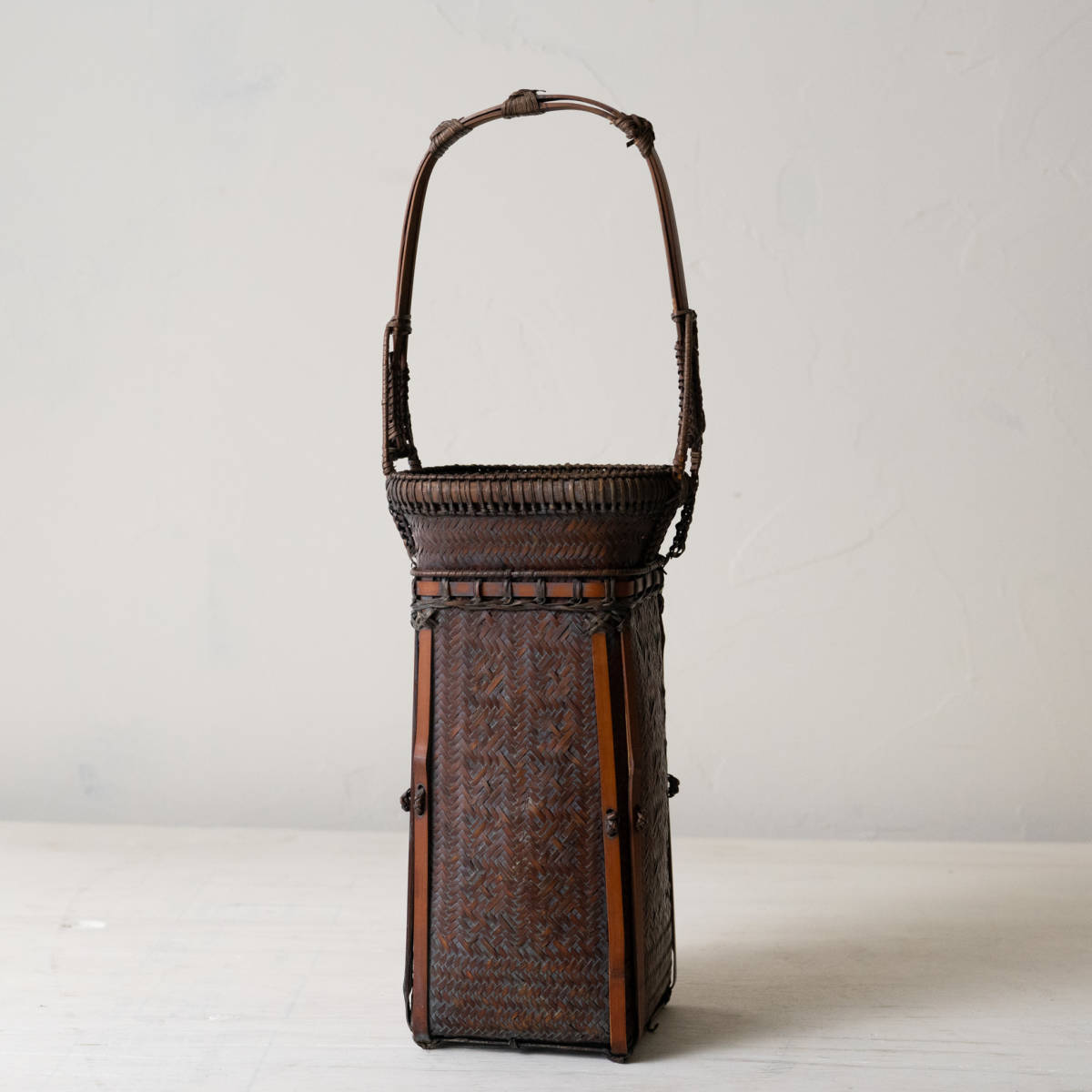 - 竹籠 花籠 泉州斎 お茶道具 置物 オブジェ 飾り 古道具 民芸 竹編み 在名
