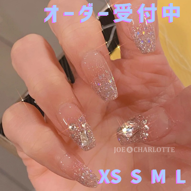 - No.20 M ジェルネイルチップ ラメ グラデ ランダムクリスタル ベージュ