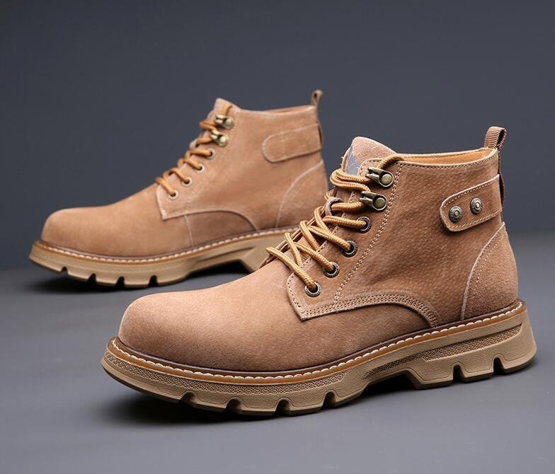 > ショートブーツ 新品 メンズ レザーシューズ マーティンブーツ スエード牛革 ハイカット レースアップ 作業靴 ベルト ブラウン 24cm~27cm