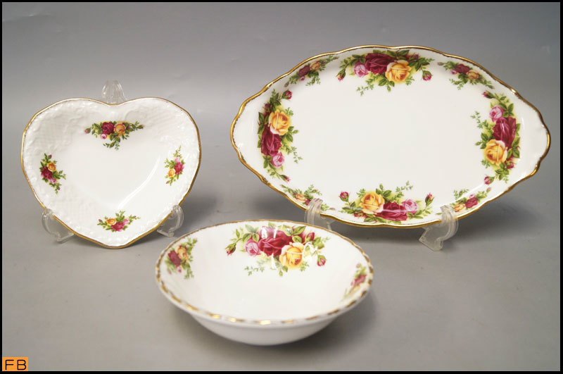 > 1354-ロイヤルアルバート◆オールドカントリー ローズ 3点 プレート ディッシュ 小皿 小物入れ 金彩 Dusky Pink Lace ROYAL ALBERT