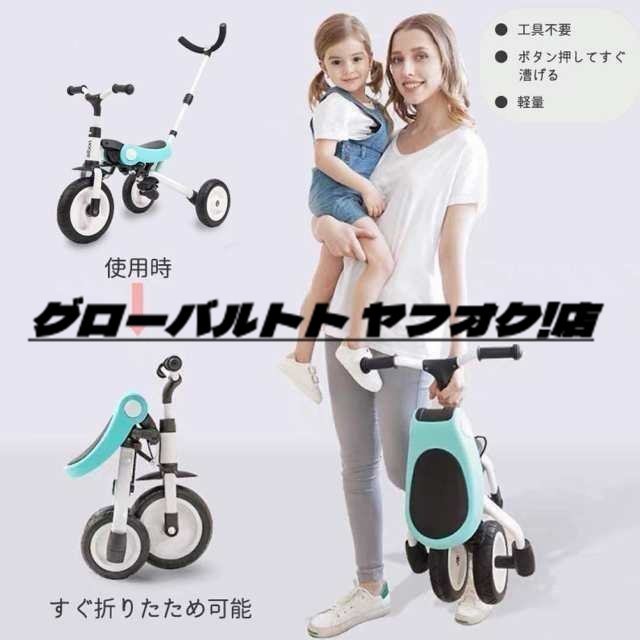 - 人気上昇中 子供三輪車 折りたたみ 手押し棒付き 転落防止ガード付き 1歳 2歳 3歳 子供用自転車 三輪車 キックバイクキッズ ブルー