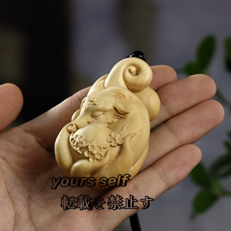 - 人気商品柘植の木製の置物 立体的な梅・九尾の狐の木彫 彫刻工芸 手づくり 装飾品 工芸品