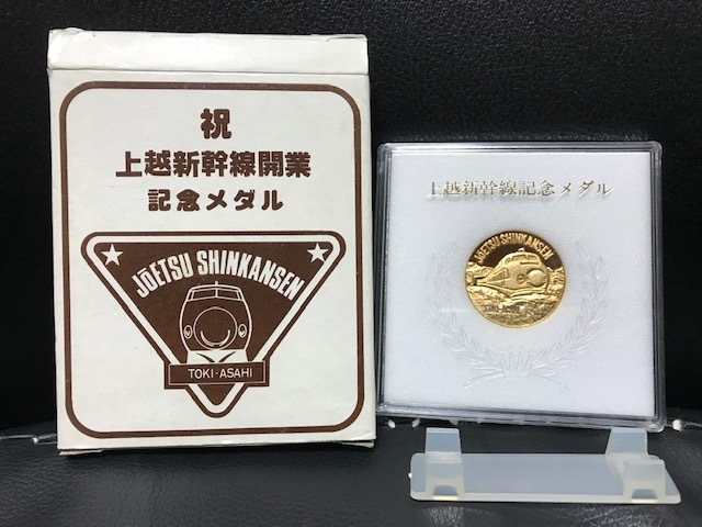 > 当時物 1982年 日本国有鉄道 国鉄 上越新幹線 開業記念メダル 200系 とき あさひ デザイン仕様 ケース 台座付 開業41周年 昭和レトロ 希少