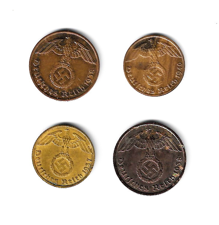 - ドイツ 第三帝国 (鉤十字) - 1, 2, 5, 10 ライヒスペニヒ/青銅貨 黄銅貨★ZD-15