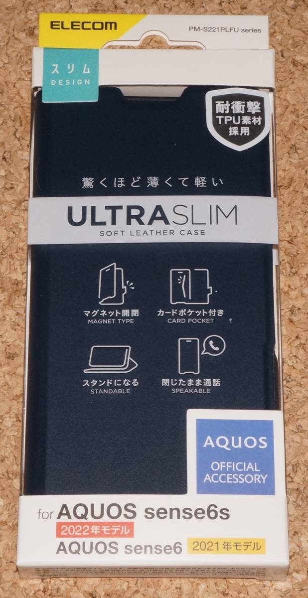 > ★新品★ELECOM AQUOS sense6s/6 レザーケース Ultra Slim ネイビー