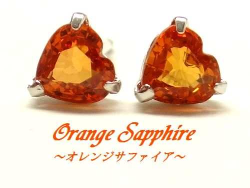 > K10WG オレンジサファイア 4mm ハート ピアス ジュエリー 高品質 10金 ホワイトゴールド 9月誕生石 サファイア 天然石 かわいい 箱付き