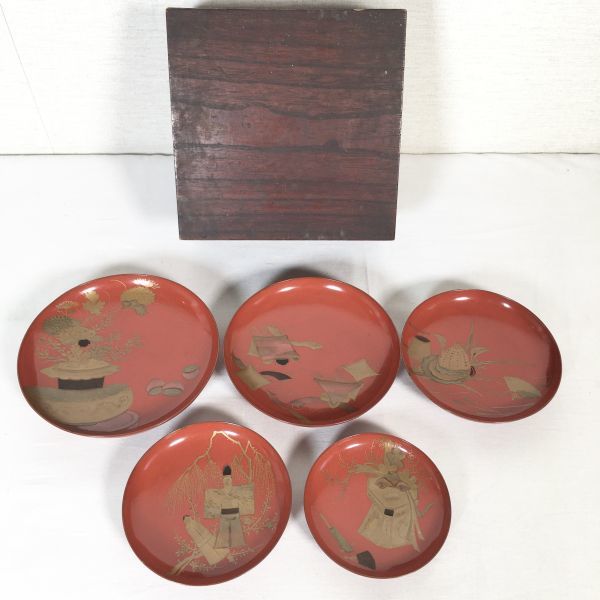 - 【5段】時代物 朱塗り 盃 杯 木製漆器 酒器 レトロ ヴィンテージ 骨董 古民具