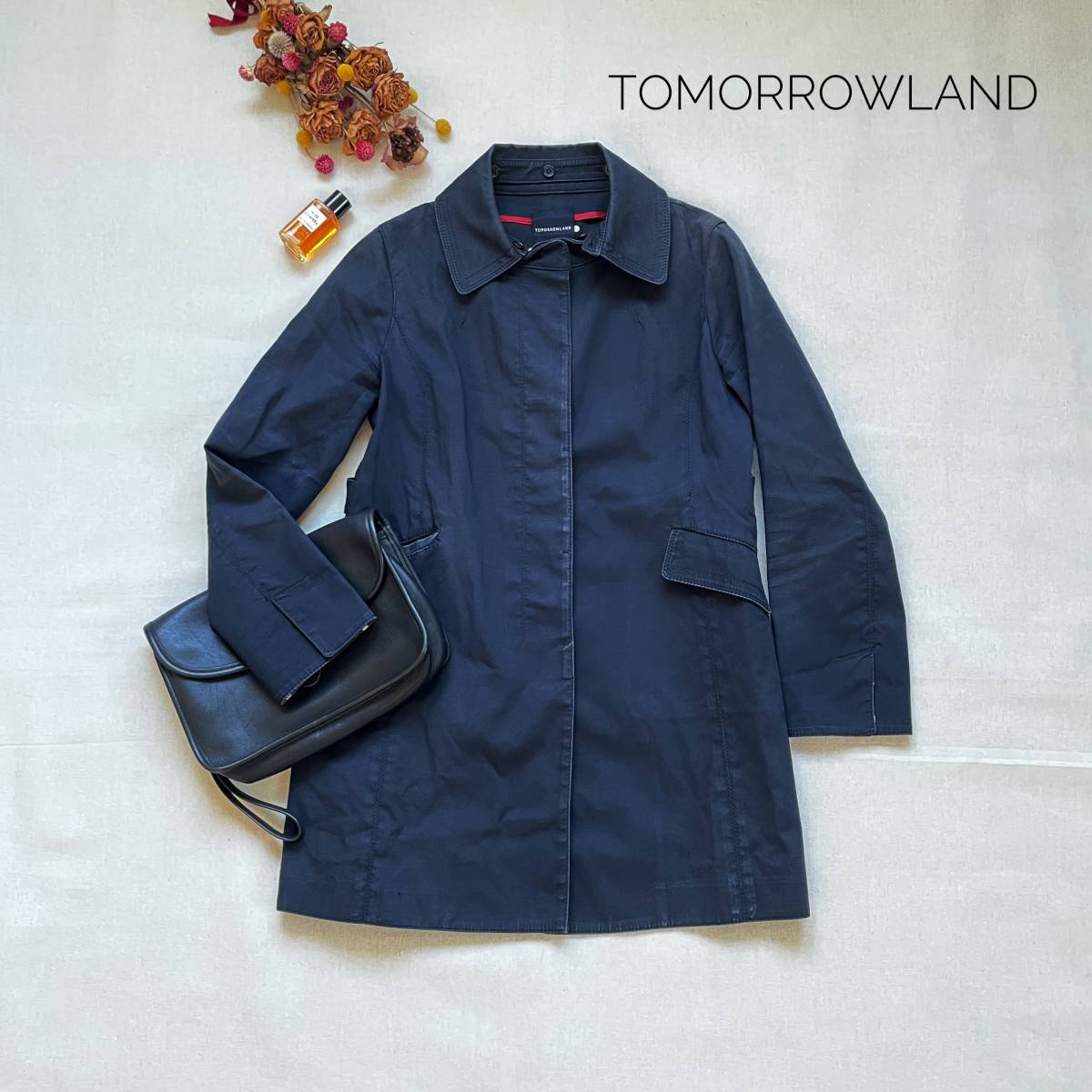 > 厳選☆高級 大人上品♪ 定価4万 トゥモローランド コレクション ステンカラーコート ノーカラー ネイビー M