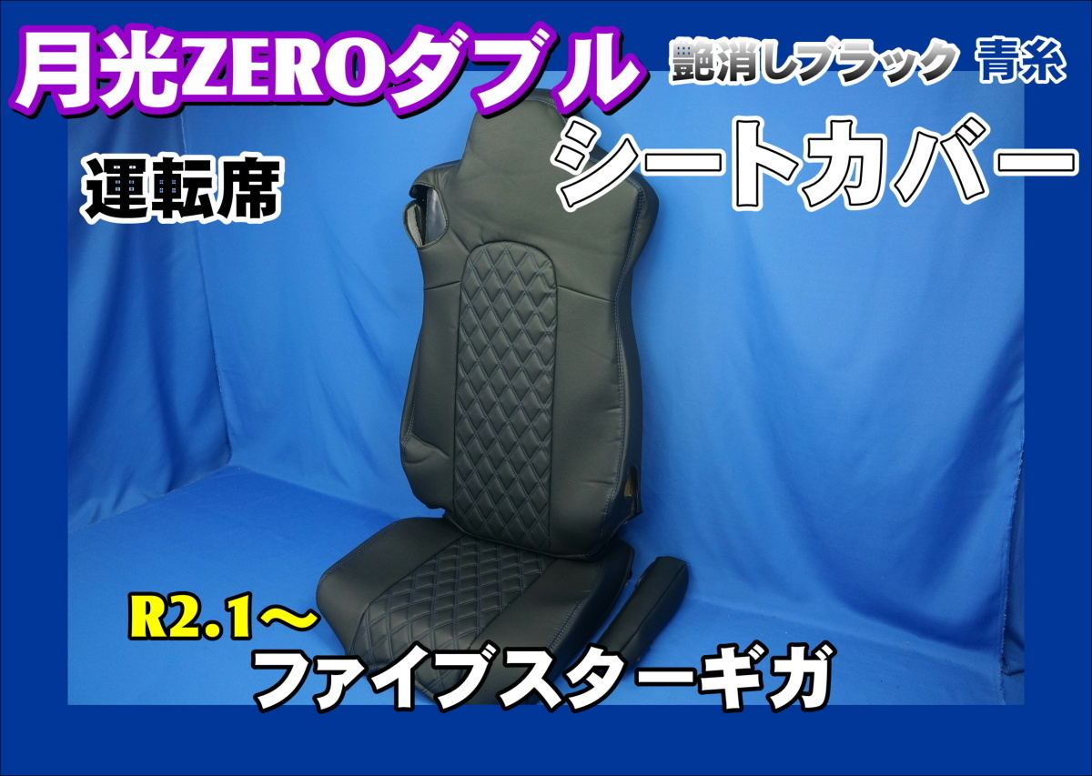 - ファイブスターギガ R2.1~用 月光ZEROダブル シートカバー 運転席のみ 艶消しブラック/青糸