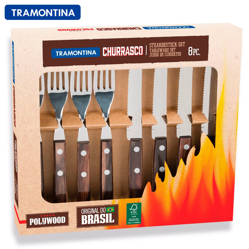 - ポリウッド ステーキナイフ&フォーク8点ファミリーセット ダーク TRAMONTINA トラモンティーナ