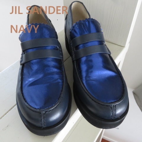 > 送料込 匿名配送 JIL SANDER NAVY ジルサンダー ローファー メタル青 35 レザー