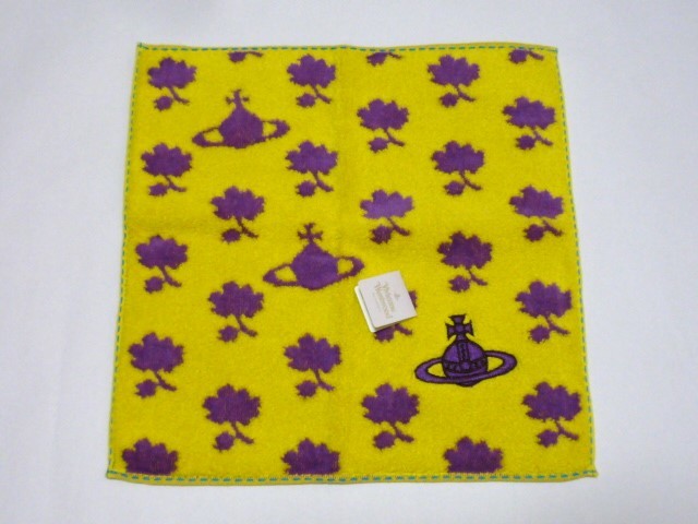 - 即決/Vivienne Westwood ヴィヴィアンウエストウッド タオル ハンカチ オーブ 花 イエロー 黄 レア 新品未使用
