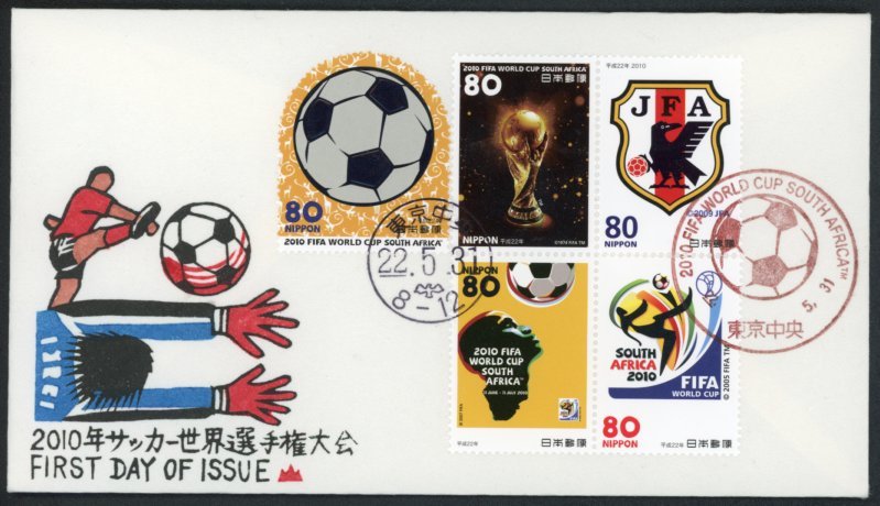 > 0656 【FDC】2010 FIFA WORLD CUP SOUTH AFURIKA(FIFAワールドカップ南アフリカ記念)[東京中央/22.5.31/渡辺版](解説書なし)