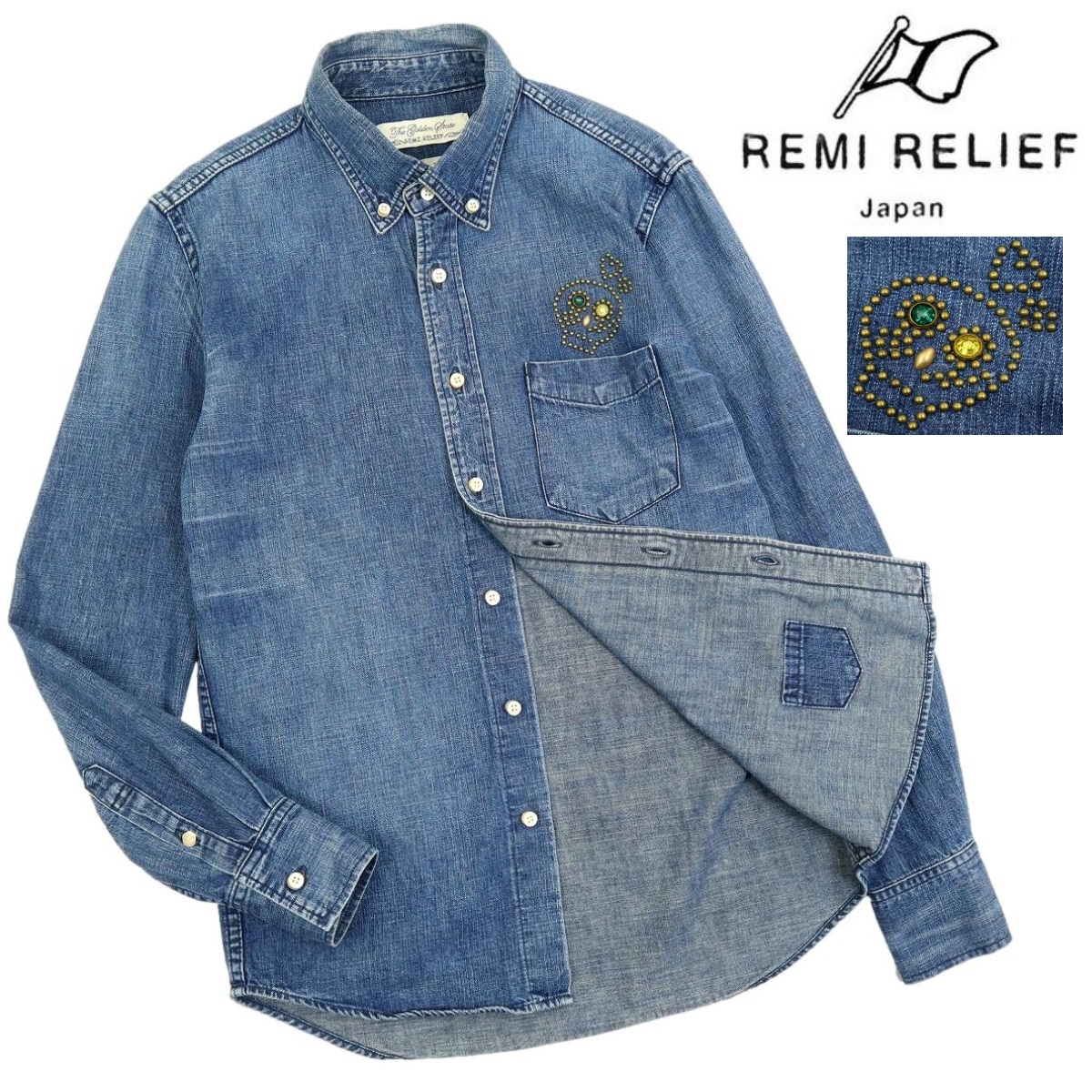 > 【S3036】【スカルスタッズ】REMI RELIEF レミレリーフ 長袖シャツ ボタンダウンシャツ デニムシャツ サイズS