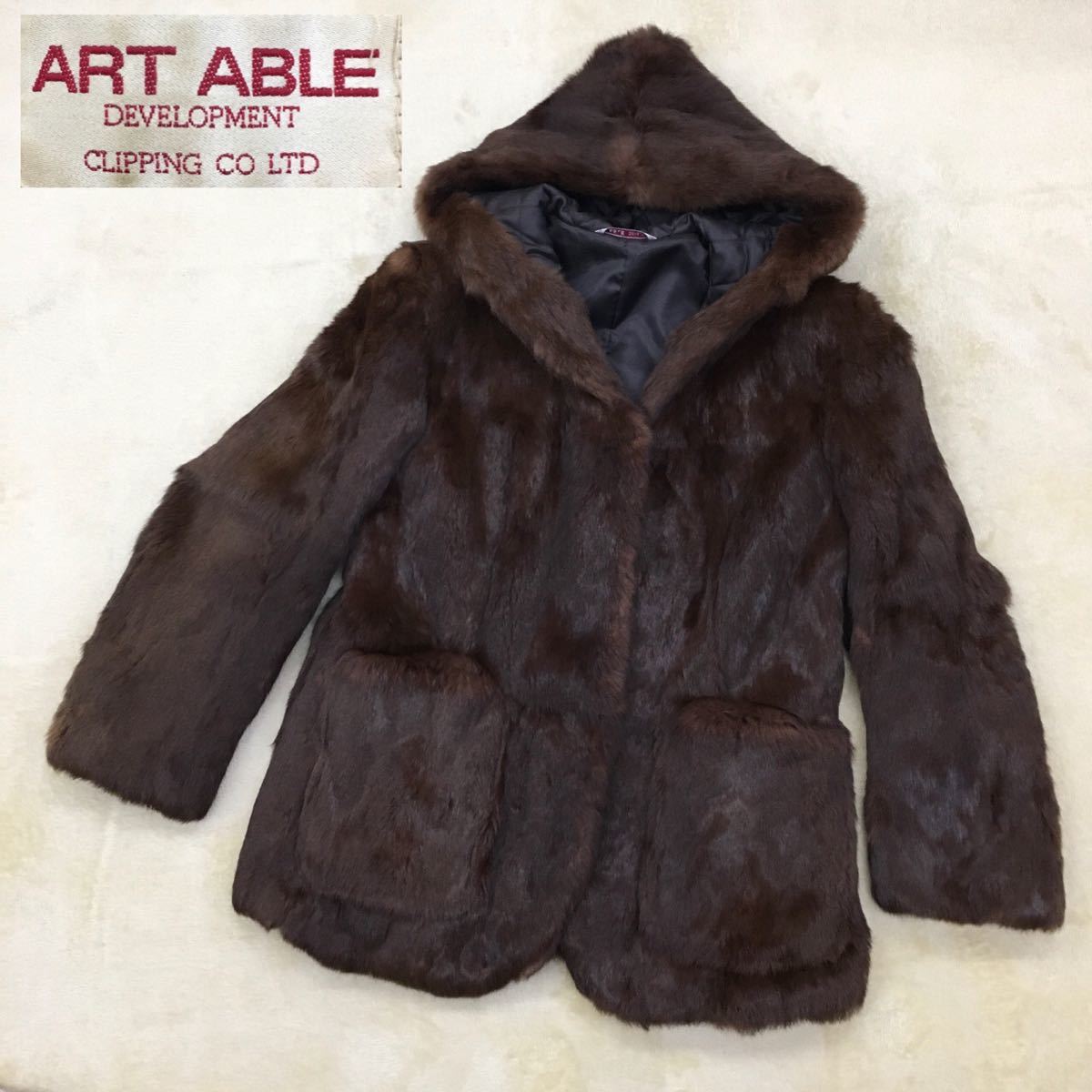 - ART ABLE DEVELOPMENT アートエイブル リアルファーコート ハーフ丈 天然毛皮 レディース サイズM
