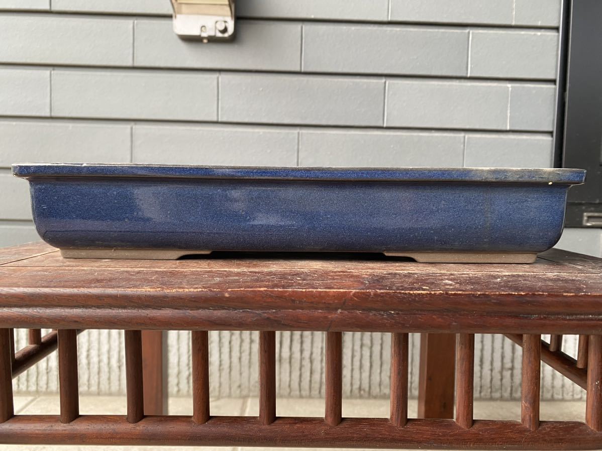 - 盆栽鉢 宝泉 長方 生子 青 瑠璃 釉 小品盆栽 ミニ盆栽 雑木 松竹梅 山野草 草花 花 平鉢 鉢 植木鉢