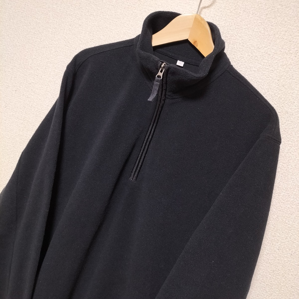 - 美品★00s OLD UNIQLO ハーフジップ フリース メンズ サイズXL ブラック 黒 無地 旧タグ ビンテージ オールド ユニクロ ブランド古着 USED