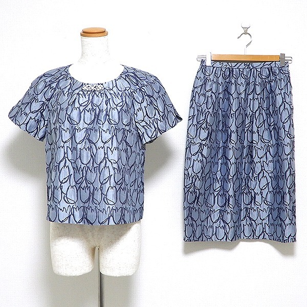 > #snc レリアン Leilian セットアップ 半袖 光沢 チューリップ柄 ビジュー 7 青系 レディース [822147]