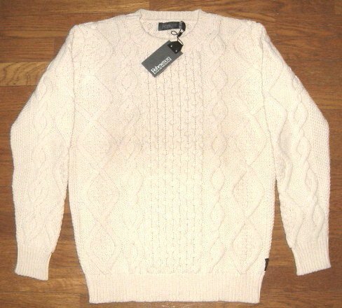 タイプは大定番のニットウェア≪100%ヴァージンメリノウール アラン編み クルーネック フィッシャーマンズセーター≫、