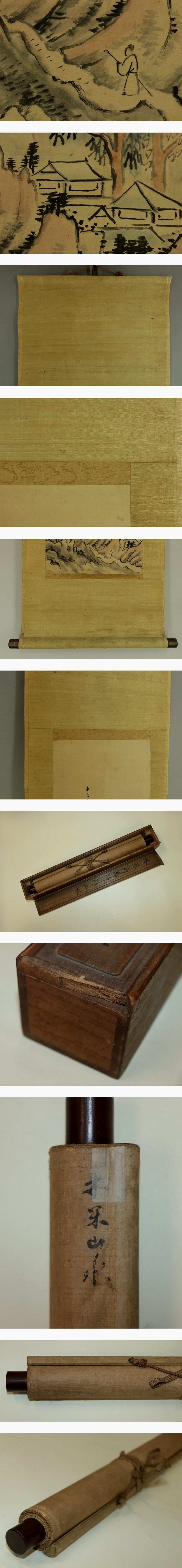 - 名品【真作】青木木米【淡彩山水】◆紙本◆合箱◆掛軸 v11035
