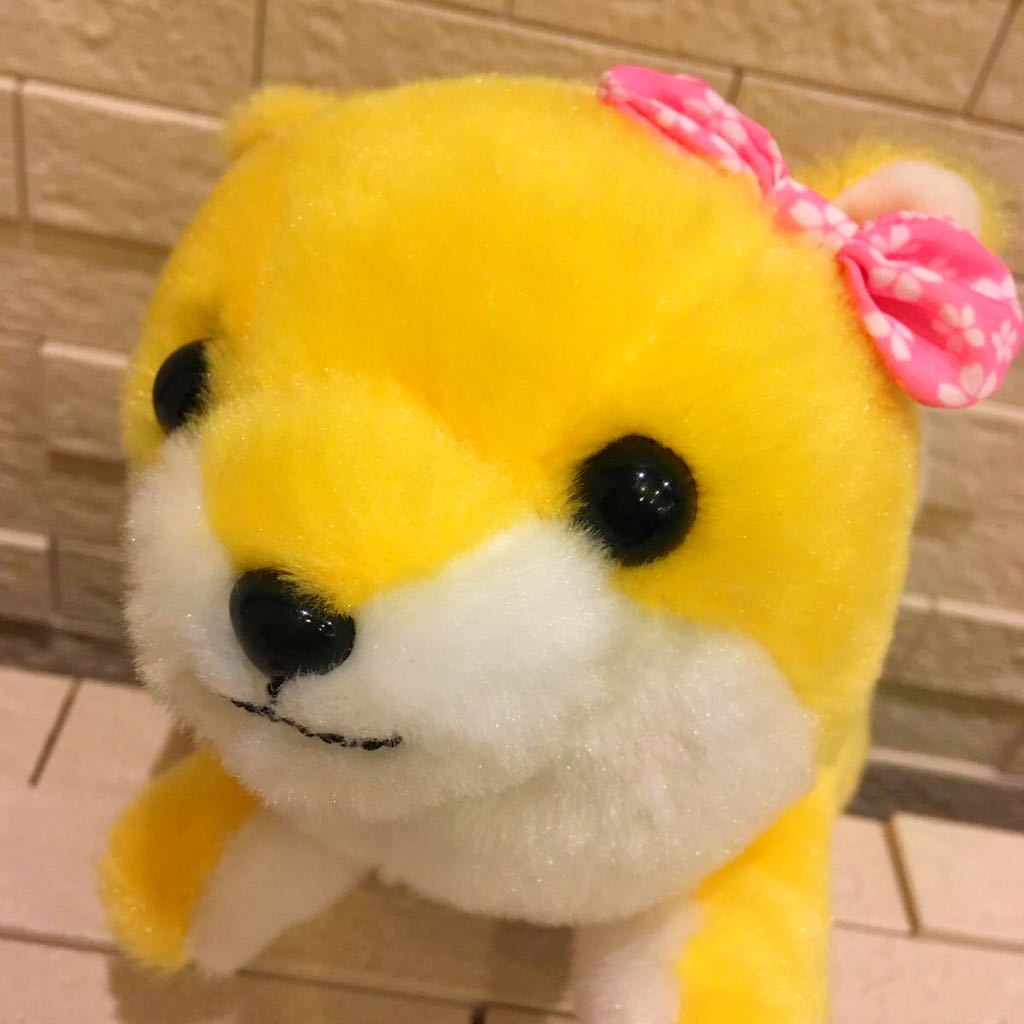 - 美品 豆しば三兄弟 柴犬 ぬいぐるみ 犬 約18㎝ 最安送料290円〜 さくら 黄色