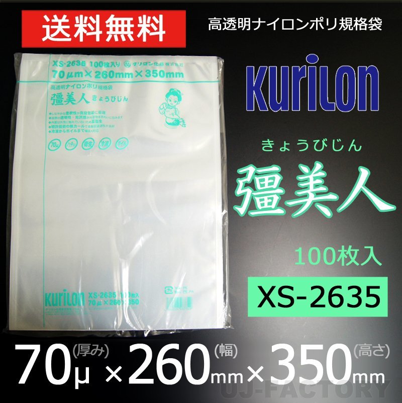 > 【即納!送料無料】彊美人 70ミクロン XS-2635 ナイロンポリ袋/真空袋 (厚み 70μ×幅 260×高さ 350mm)【100枚】★五層構造・三方規格袋